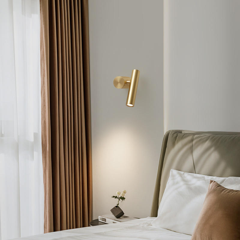 Lampe murale de lecture LED minimaliste nordique tout en cuivre, protection des yeux, lumière de chevet rotative pour salon, hôtel, maison, chambre à coucher
