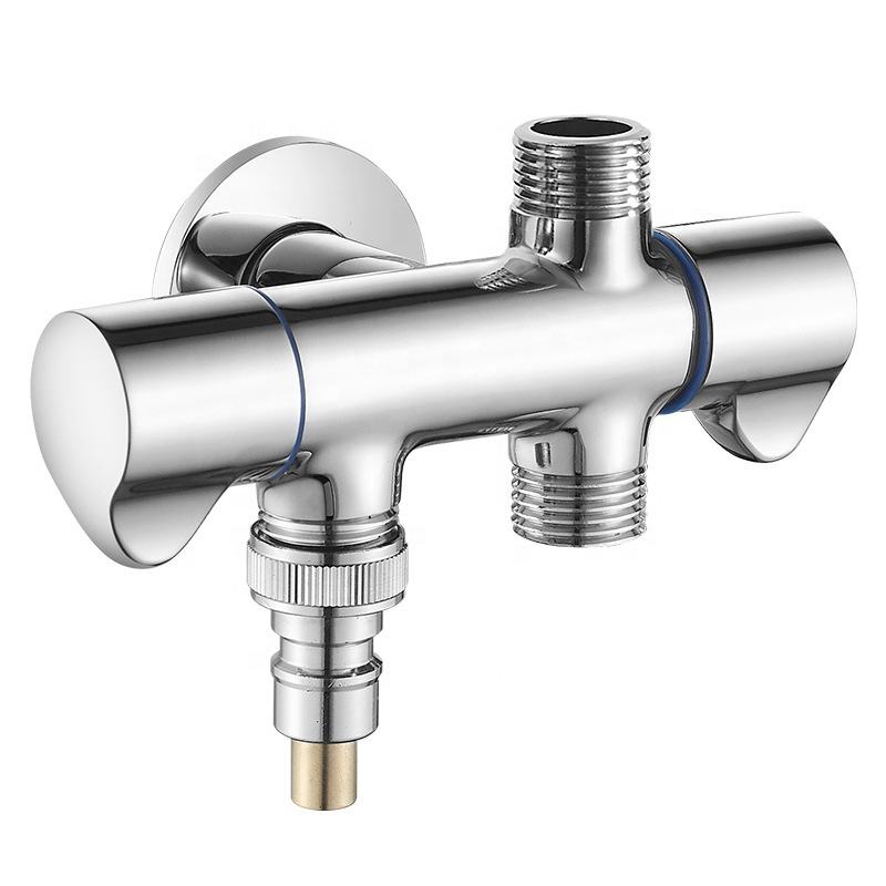 Robinet d'angle à trois voies tout en cuivre, une entrée, trois/sans sortie, pour lave-vaisselle, lave-linge, séparateur de robinet, poli, montage mural
