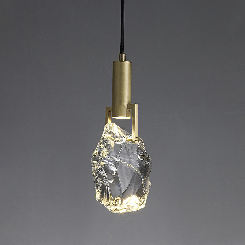 Lampe suspendue à tête unique en cuivre massif, style minimaliste, avec cristal, pour chambre à coucher, lampe de chevet, salon de luxe, bureau