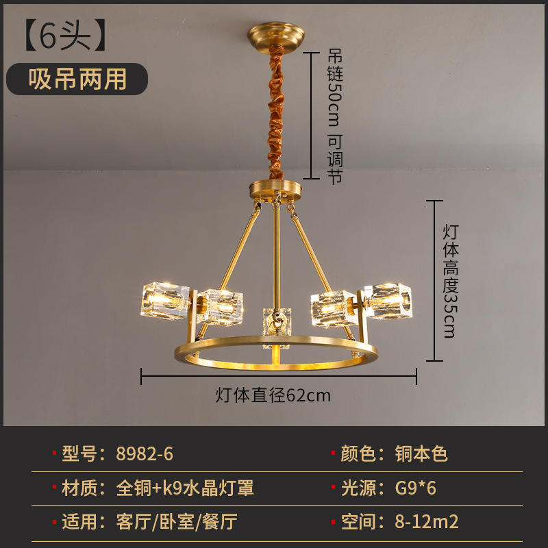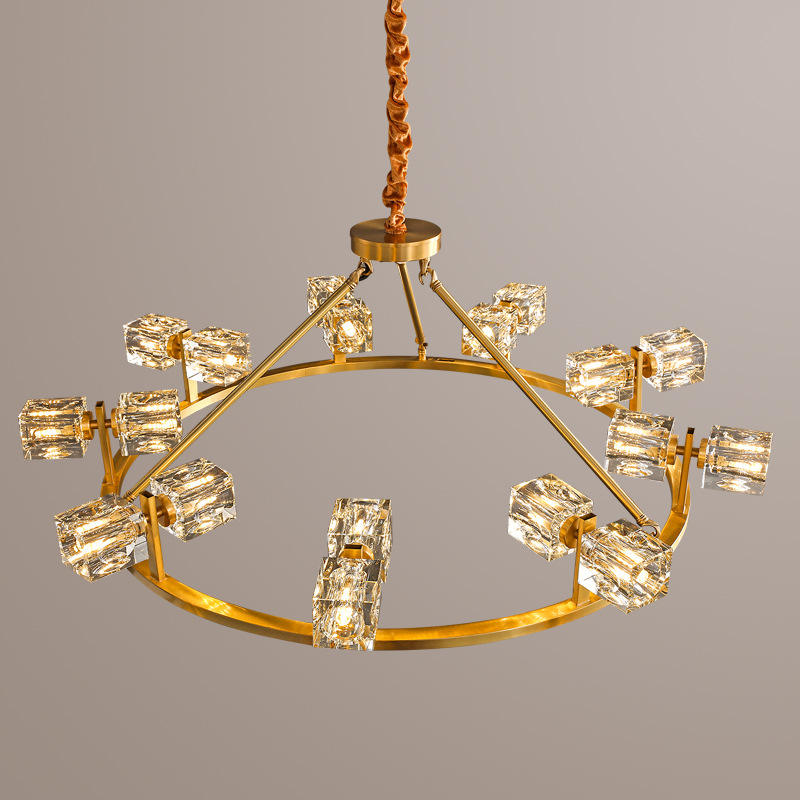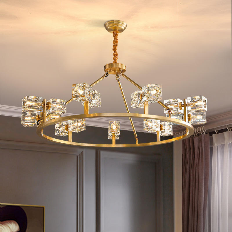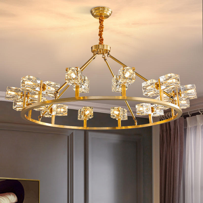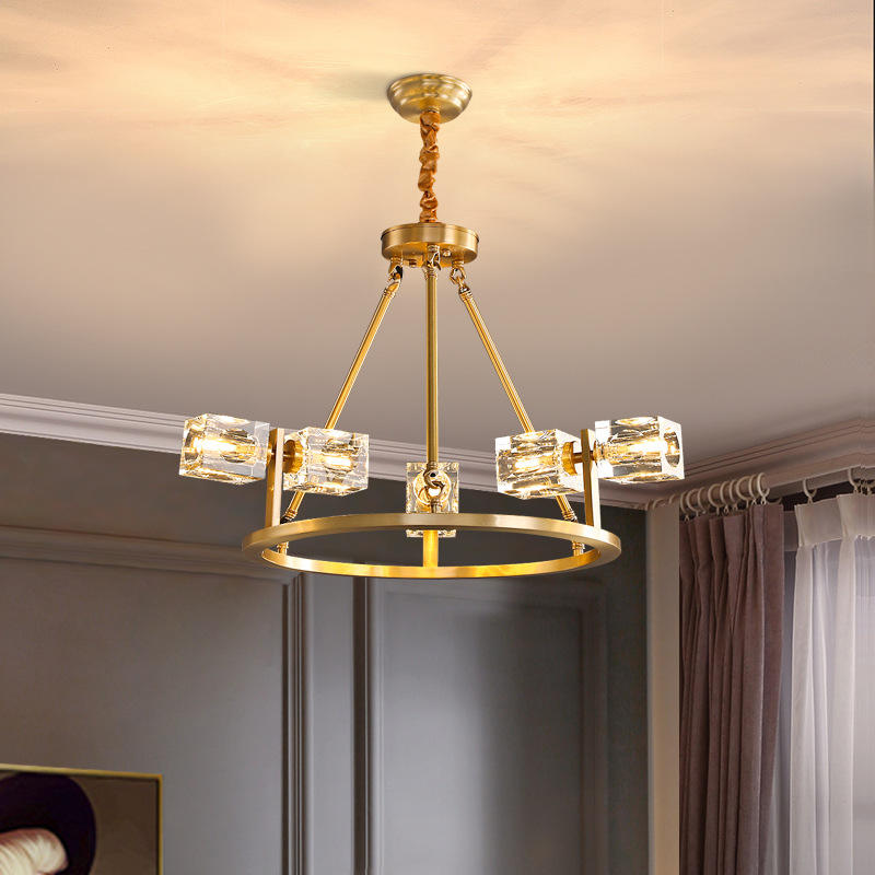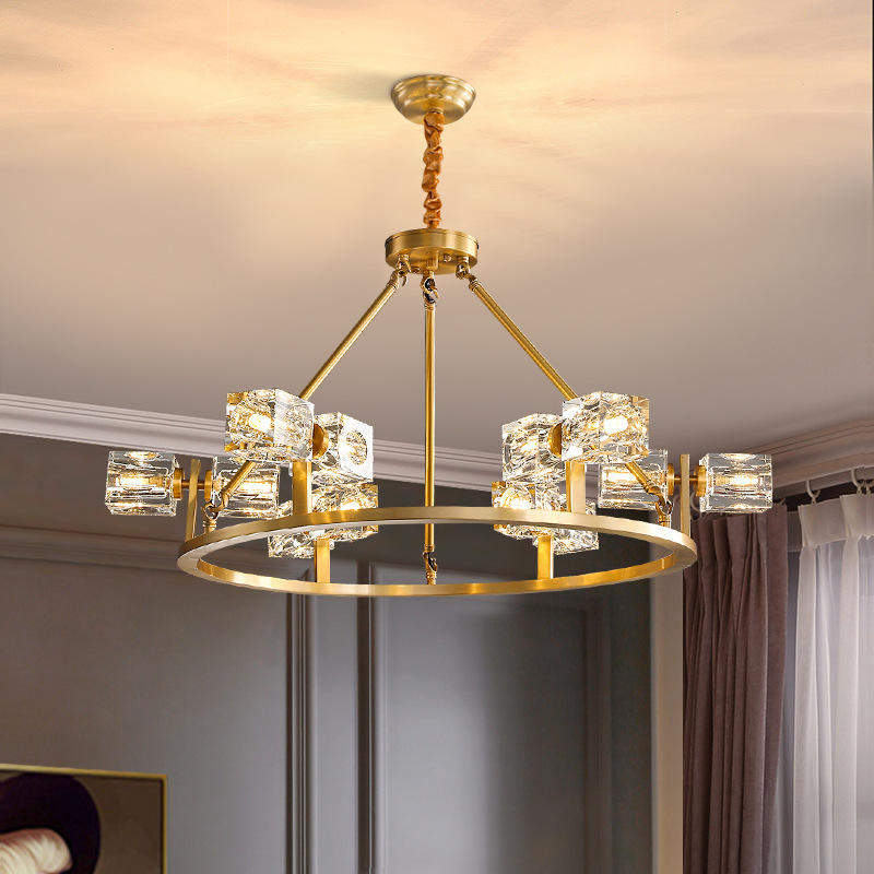 Lustre postmoderne tout en cuivre pour salon, luminaire carré en cristal de luxe de style nordique avec alimentation CA
