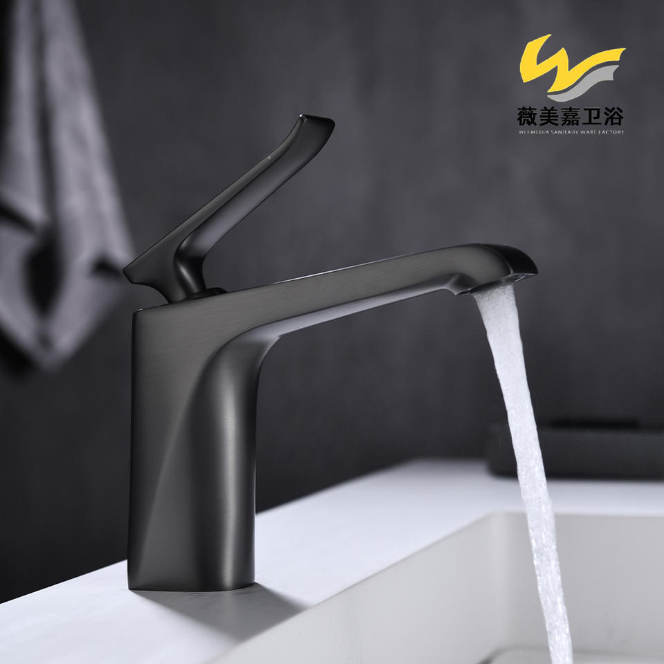 Robinet de lavabo de salle de bain à une seule poignée tout en cuivre avec noyau de vanne à disque en céramique pour eau chaude/froide