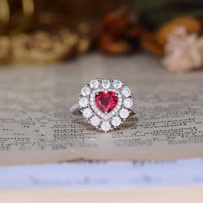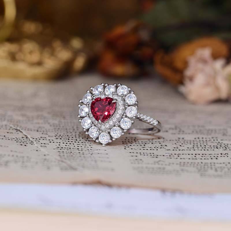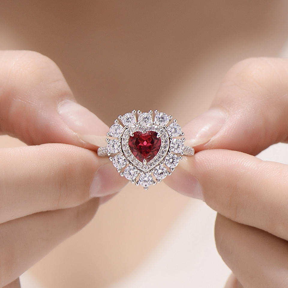Bagues en silicone avec pierres précieuses en forme de cœur de rubis All Fashion Lab, plaquées rhodium et or, style vintage, pour usage quotidien, unisexe, vente en gros