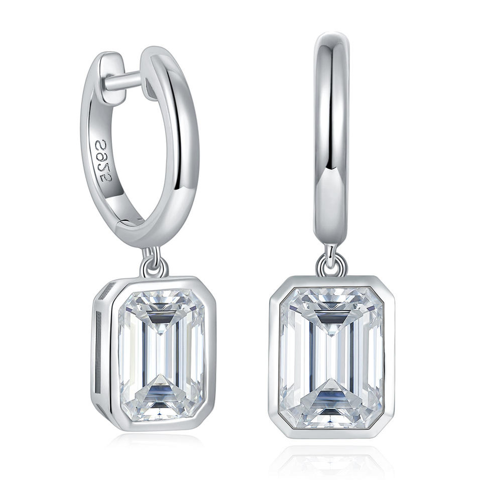 Boucles d'oreilles créoles tendance en forme de clé avec pierre Moissanite, en silicone, plaquées rhodium et or, pour anniversaire