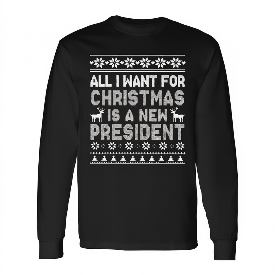 Tout ce que je veux pour Noël, c'est un nouveau président, t-shirt de Noël à manches longues
