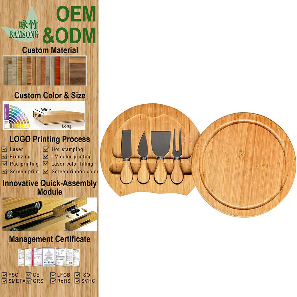 Planches à découper écologiques tout-en-un pour la cuisine à domicile - Planche à découper ronde avec porte-couteau intégré et plateau de service