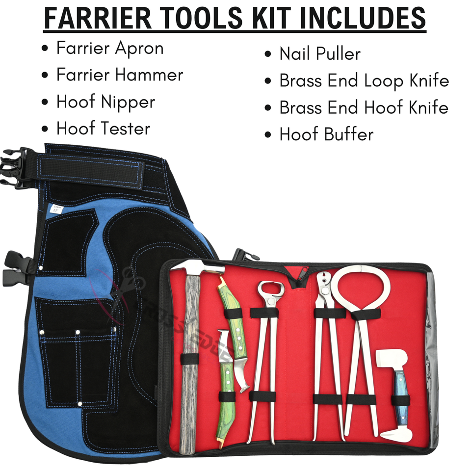 Trousse d'outils de maréchalerie avec tablier, testeur de douleur des sabots, dissolvant d'ongles, pince à sabot