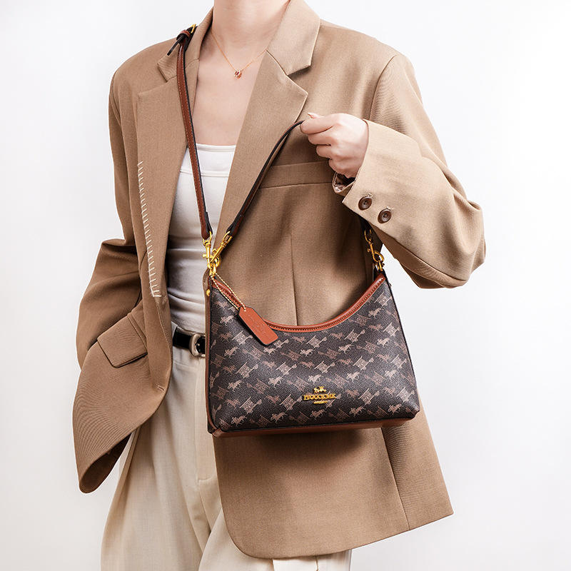 Sac à bandoulière Guess Designer Nouvelle Collection, en PU, motif fleur vintage, fermeture éclair, style croissant, polyvalent et tendance