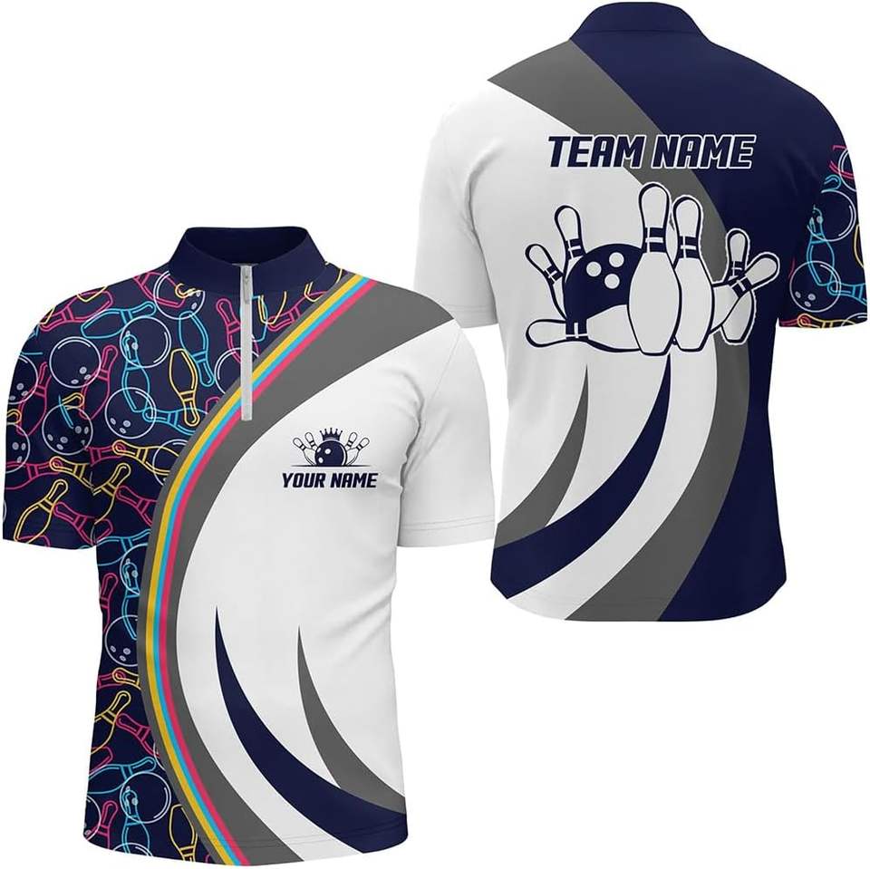 Maillot de bowling unisexe en polyester à manches courtes, entièrement imprimé, tricoté, avec logo, demi-zip 3D, séchage rapide, grande taille, sport
