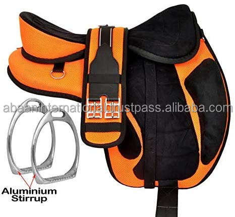 Freemax Selle de cheval anglaise pour adulte sans arbre synthétique tout usage avec circonférence assortie et étriers en aluminium Style occidental
