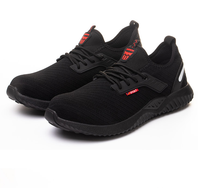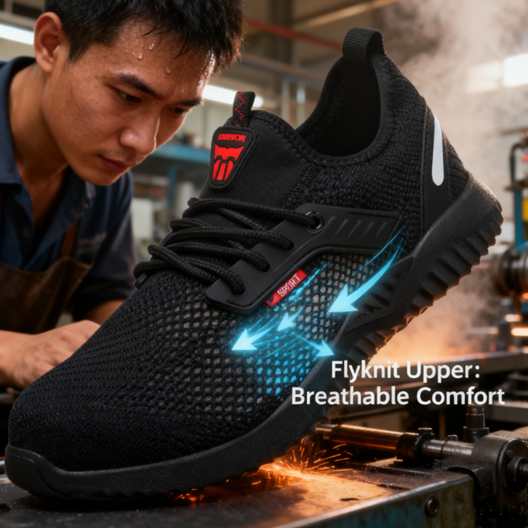 All-Season Lightweight Functional Shoes Flying Knit Rubber Outsole Steel Toe Caps Anti- Smashing Protective Men's Safety Shoes