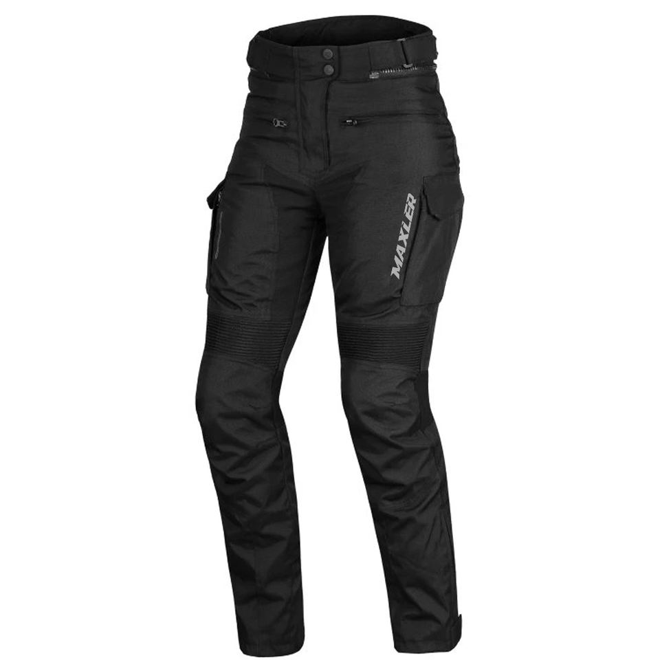 Pantalon de moto en textile conçu pour une utilisation pratique sur route, résistant aux abrasions et équipé d'une protection CE niveau 1.