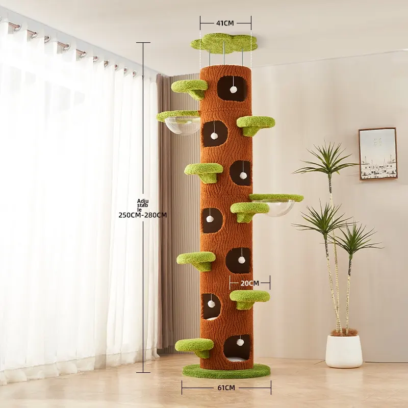 Arbre à chat multifonctionnel en bois non massif toutes saisons Plate-forme de saut pour chat intégrée Capsule verticale pour poste spatial Chat