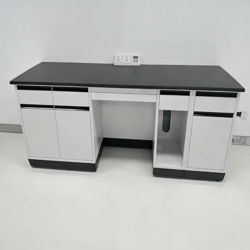 Banc de laboratoire résistant aux produits chimiques, entièrement en acier, avec armoires de rangement