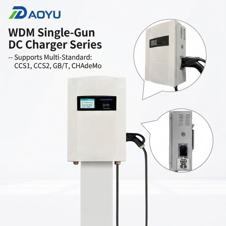 Chargeur rapide DC 40 kW toutes saisons mural CCS2 CCS1 GBT CHAdeMO IP54 OCPP 1.6J Station intelligente avec application pour usage commercial extérieur