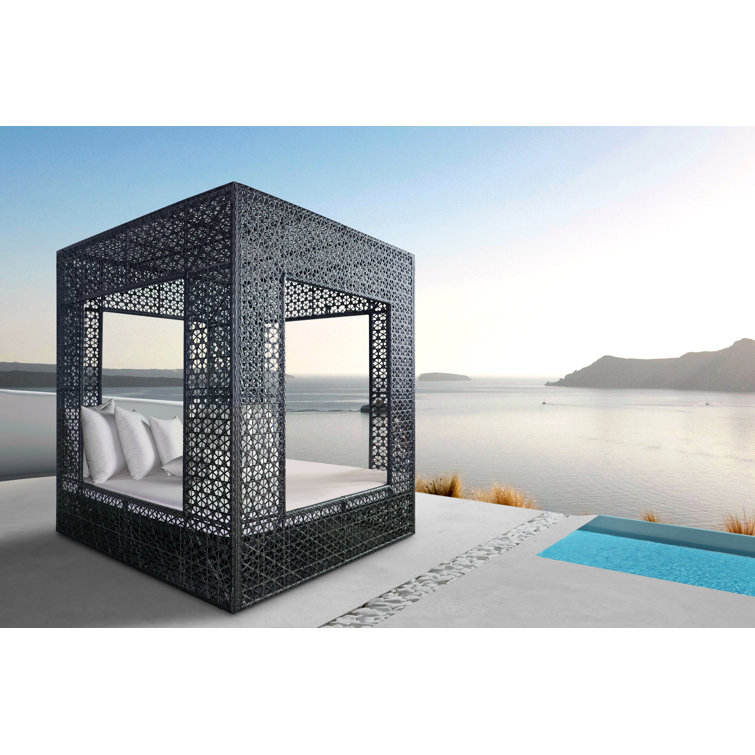Chaise longue de plage toutes saisons avec auvent, en rotin PE tressé à la main, lit de repos imperméable pour piscine, transat de plage, chaise longue de soleil