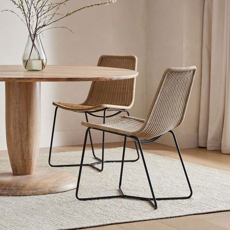 Ensemble de salle à manger d'extérieur en osier tissé avec cadre en fer pour meubles de jardin modernes tout temps pour hôtel, patio et cuisine