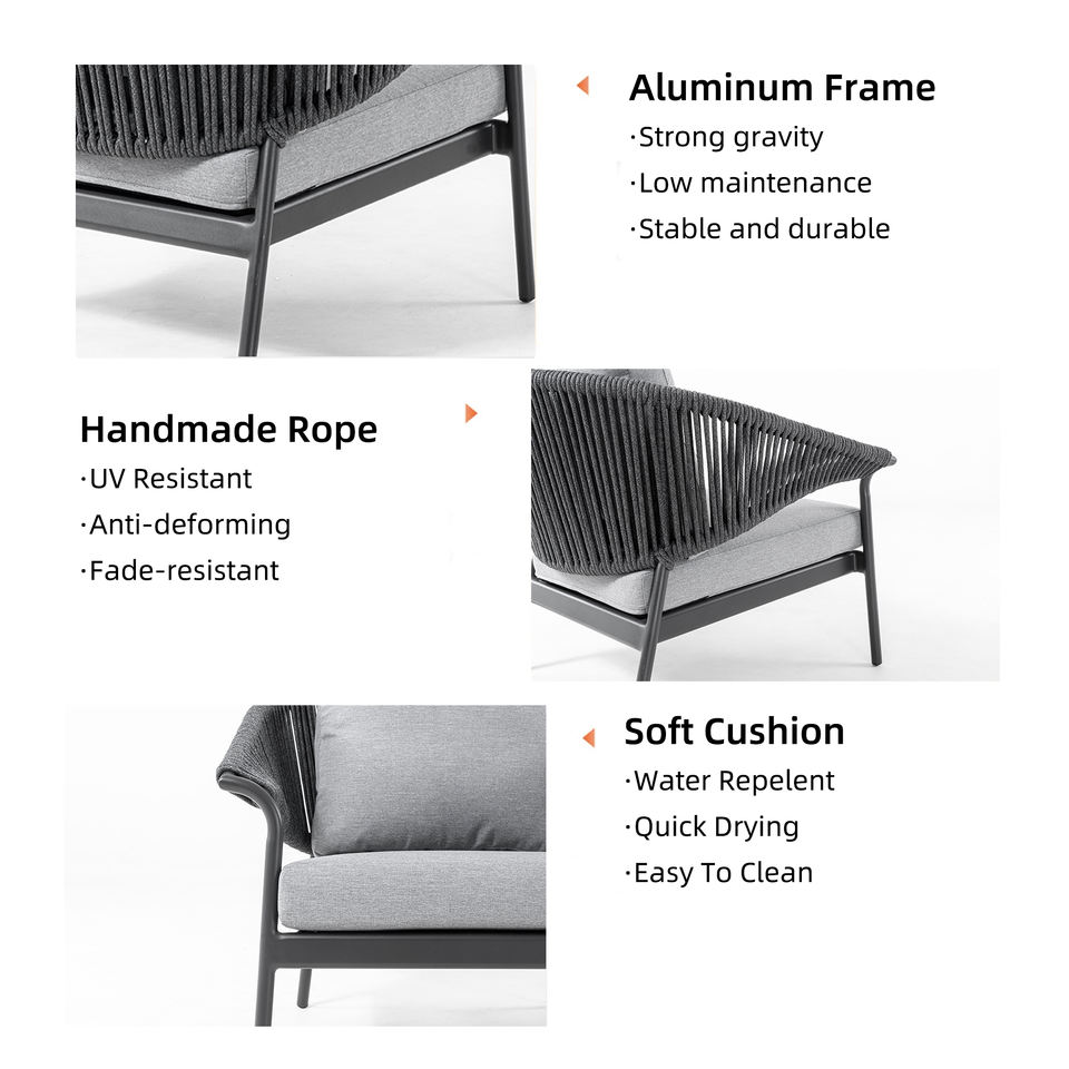 Ensemble de meubles de patio en corde pour toutes les saisons, canapé d'extérieur moderne avec table basse, ensemble de salon de jardin de luxe pour balcon