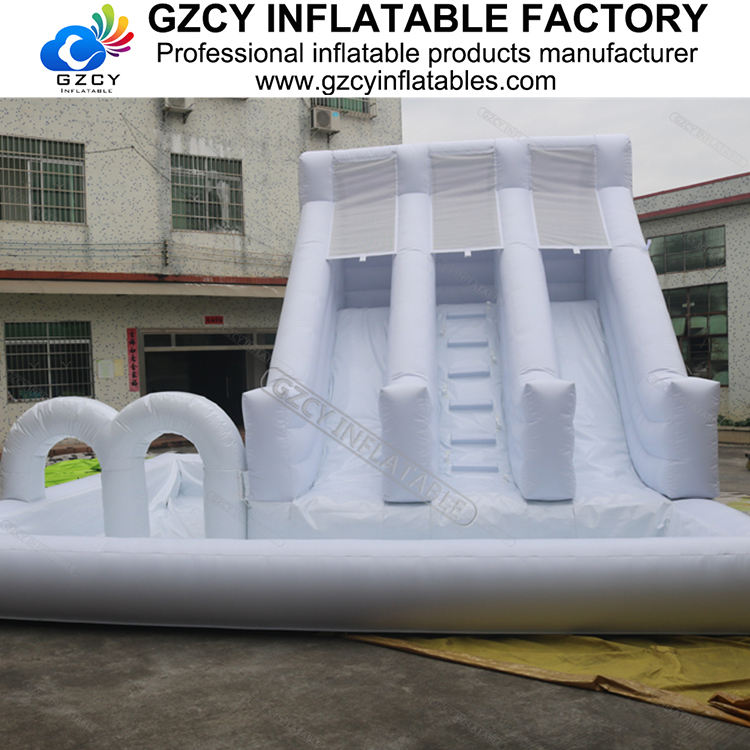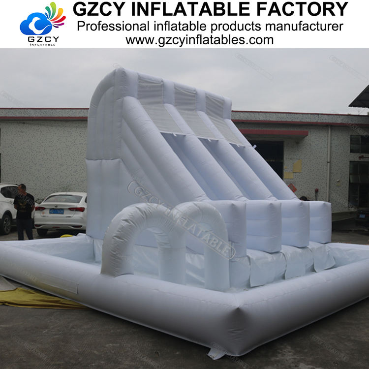 Toboggan aquatique gonflable tout blanc avec piscine à balles pour événements avec château gonflable interactif