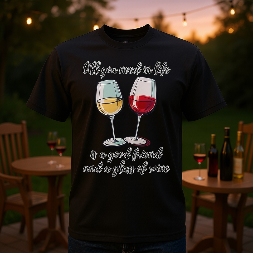 Tout ce dont tu as besoin dans la vie, c'est d'un bon ami et d'un verre de vin - T-shirt promotionnel haut de gamme