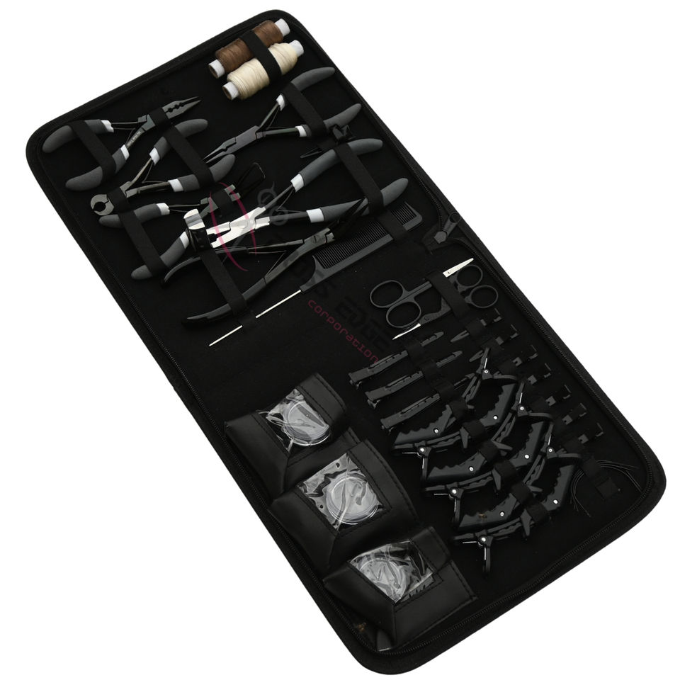 Couleur:Ensemble d'outils pour extensions de cheveux noirs, couleur personnalisée, comprenant