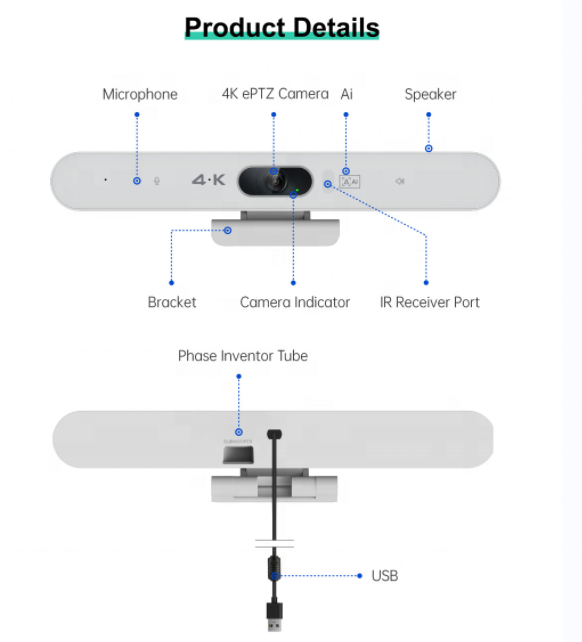 Design:All-in-one (camera + mic + speaker)