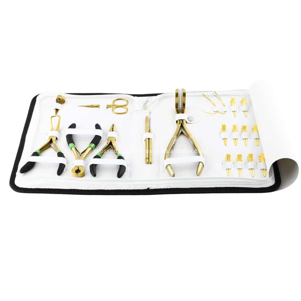 Kit d'outils d'extension de cheveux tout en un Micro Beads & Tape ins Remover Plier Bond cutter Hair Loop & hook 12pcs clips & ciseaux