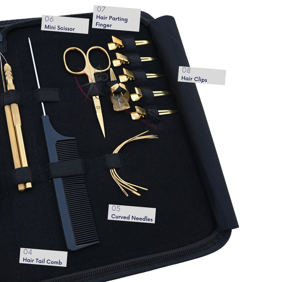 Kit d'outils tout-en-un pour extensions de cheveux avec pince à micro-perles, crochet de tirage, mini-ciseaux coupe-fil, clip de styliste et étui
