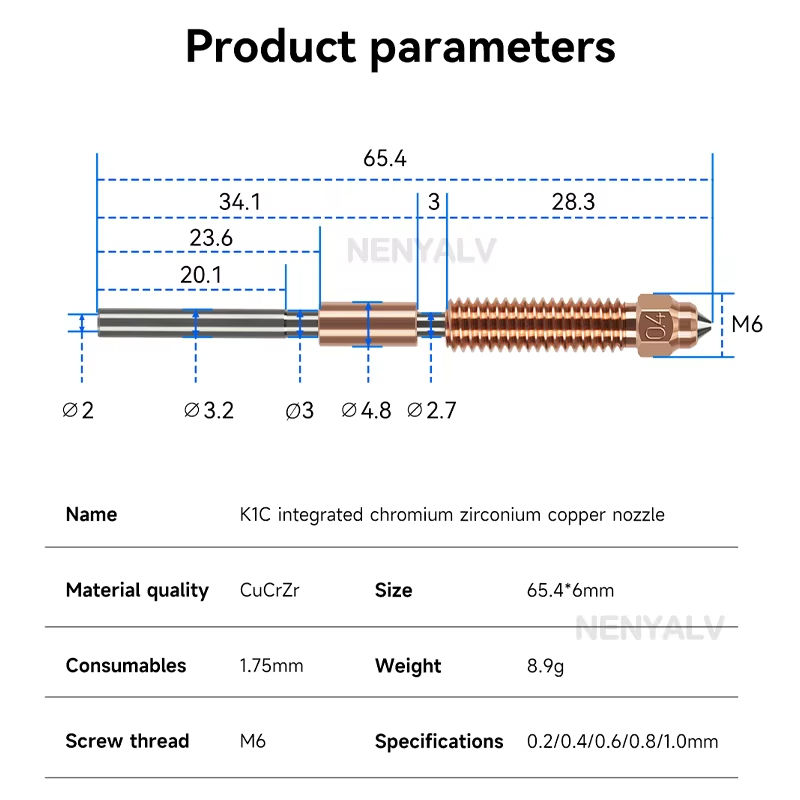 Buse en titane en acier trempé tout-en-un / Débit élevé 0,2-0,8 mm pour Hotend Creality K1 K1C K1 Max Ender 3 V3
