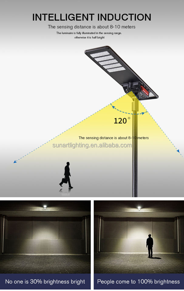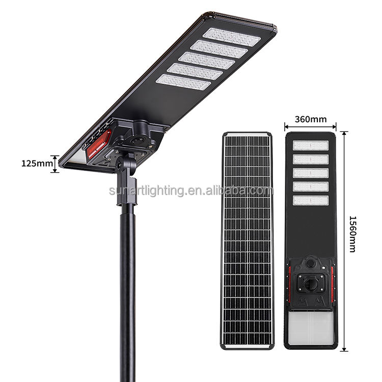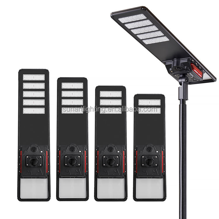 Lampadaire solaire tout-en-un IP66 avec panneau solaire intégré 100W-200W, module LED, batterie LiFePO4