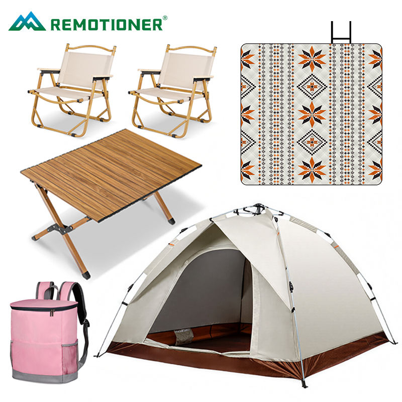 Ensemble de camping portable tout-en-un avec tente automatique, table et chaise pliantes, tapis de pique-nique, sac isotherme