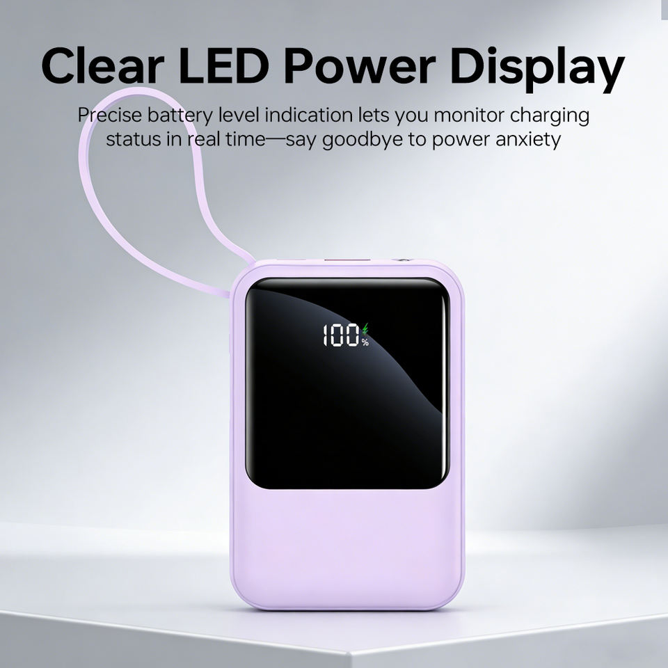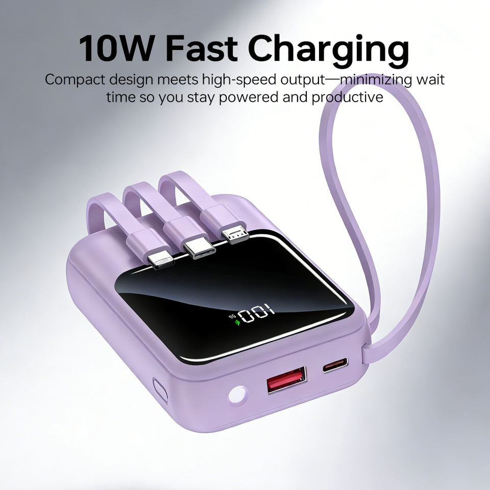 Chargeur portable tout-en-un 10000mAh avec câbles intégrés, Powerbank mince pour appareils Android et iOS