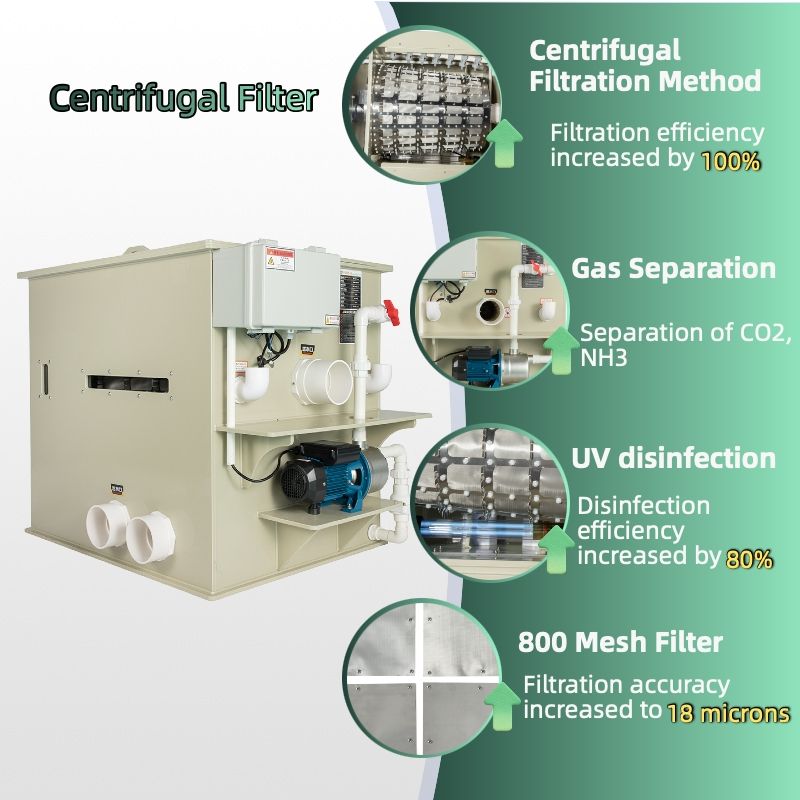 Filtre à Tambour Rotatif Tout-en-un pour Aquaculture RAS, Boîte en Acier Inoxydable 100m³ pour Bassin Piscicole