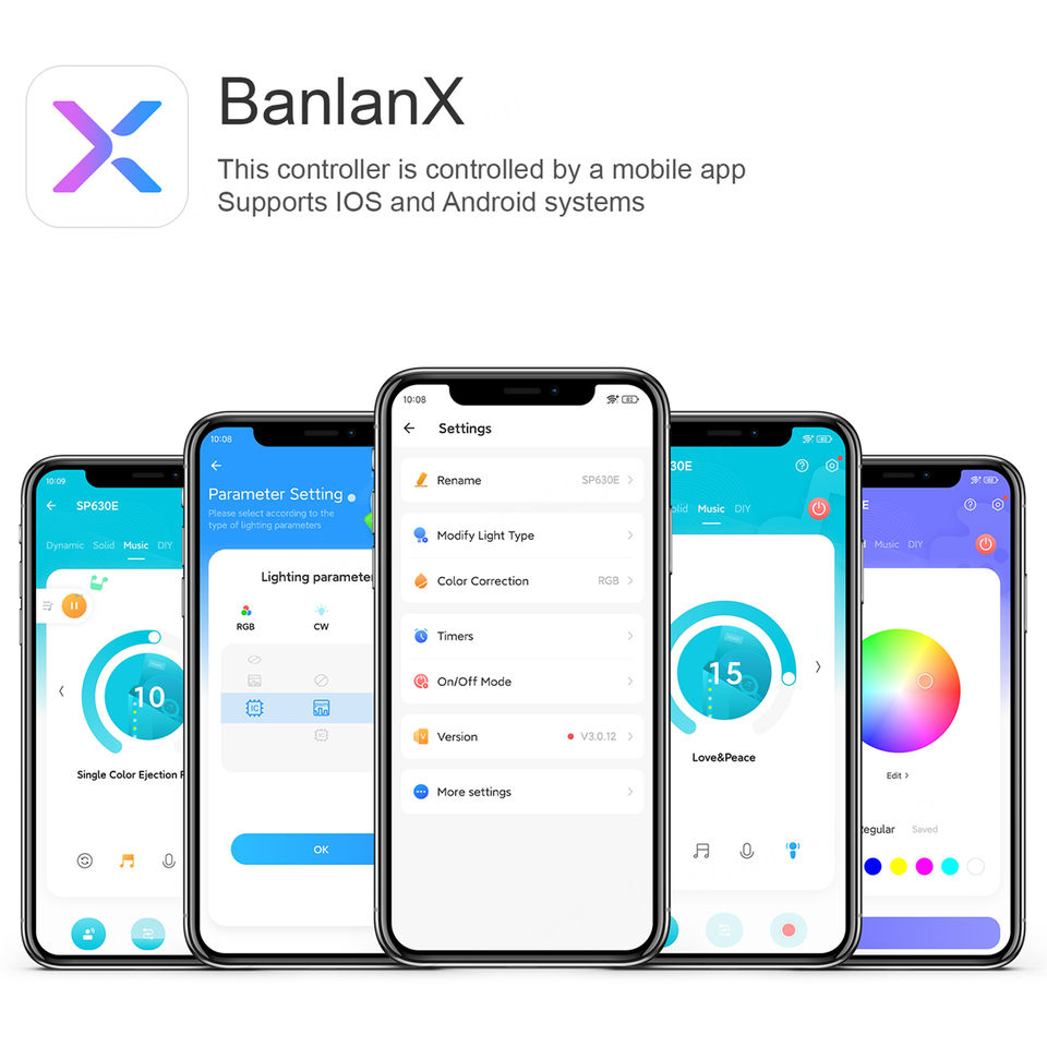 Contrôleur de musique Bluetooth tout-en-un SP630E pour bandes LED, contrôleur LED PWW 5 canaux 12V PWM, contrôle par application Android/iOS, Bluetooth LED