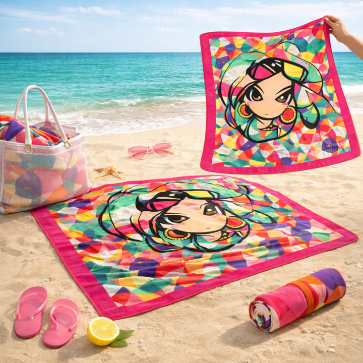 Serviette de plage en microfibre à impression intégrale par sublimation 80x160cm, imprimée double face, fermeture à pression, couleur HD pleine couleur 200gsm