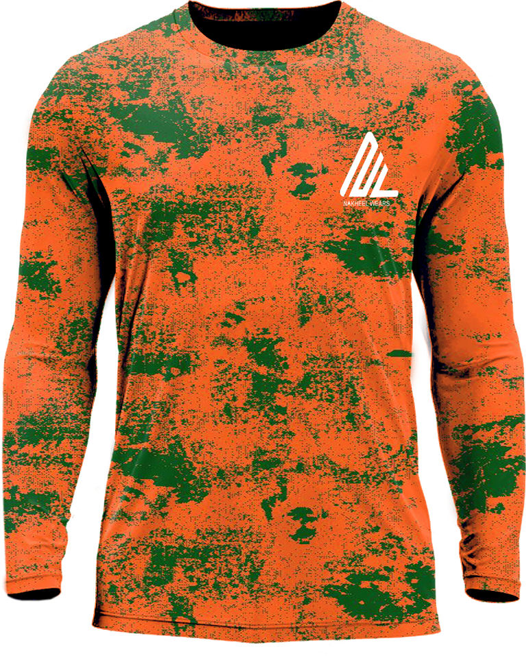 Chemise de performance à manches longues avec impression camouflage par sublimation intégrale pour les activités sportives, la chasse, la pêche, vêtements camouflage.
