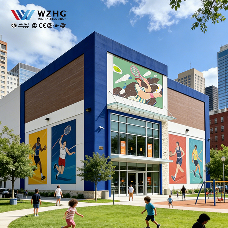 Structure de bâtiment modulaire multisports tout temps, étanche, en acier galvanisé, avec une durée de vie de 50 ans, pour les universités