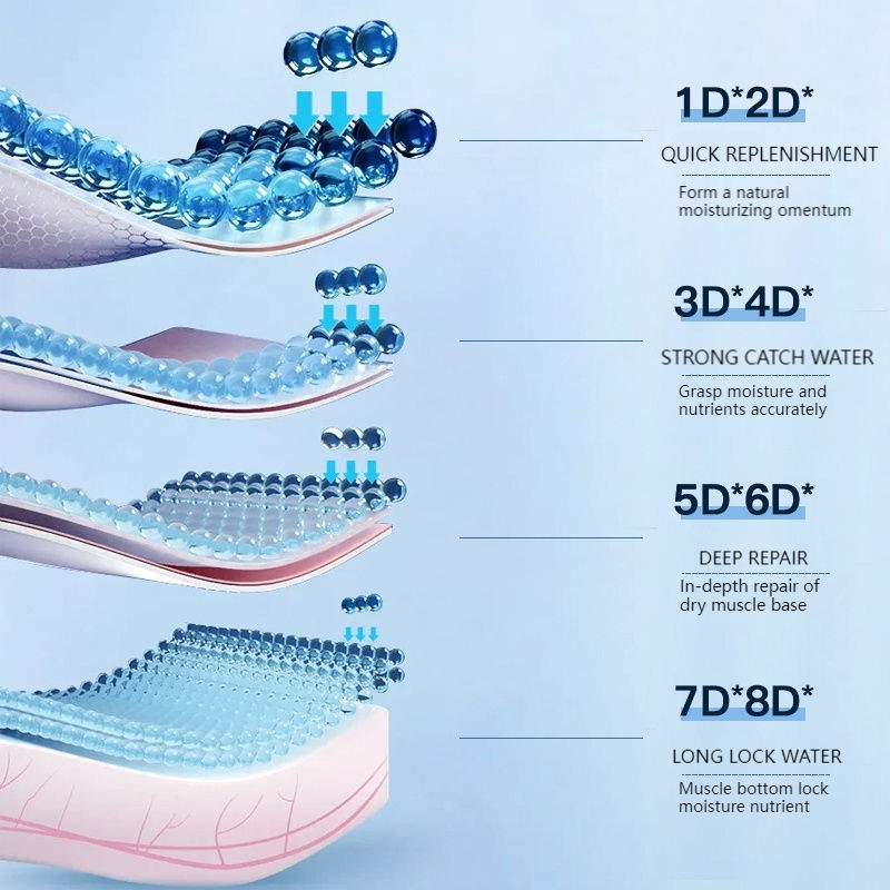 potassium hyaluronate, sodium hyaluronate crosspolymer, hydrolyzed sodium hyaluronate, acetylated sodium hyaluronate, hyaluronic acid, fullerene, hydrolyzed hyaluronic acid,, hydroxypropyltrimonium chloride hyaluronic acid, chondrus crispinus extract,, eryngium maritimum callus culture filtrate, Tetrahydromethylpyrimidine carboxylic acid, purslane extract, xanthan gum, glucose, hydrolyzed sclerotium rolfsii gum, centella asiatica extract, hydrogenated lecithin, avena sativa kernel extract, sodium hyaluronate, bifid yeast fermentation lysate, 3-o-ethyl ascorbic acid, carnosine, squalane, gentiana scabra root extract, beta-glucan, lactobacillus/soy milk fermentation filtrateIngrédient
