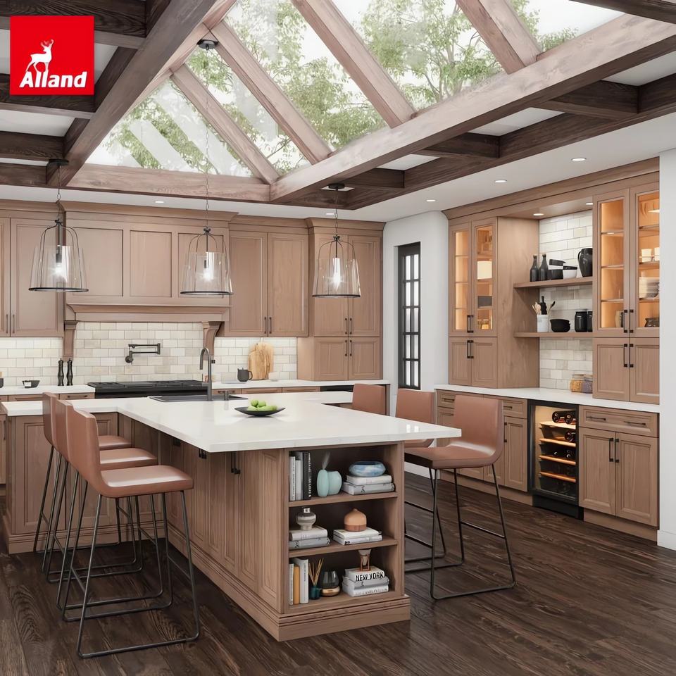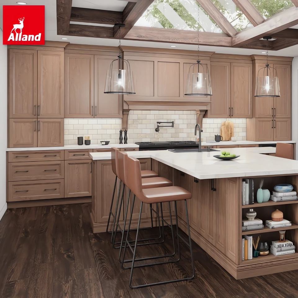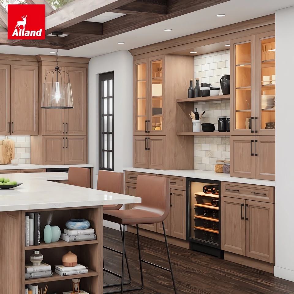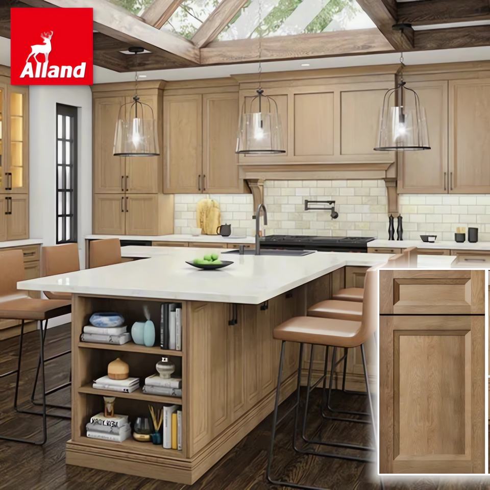 Armoires de cuisine Alland en chêne naturel avec quincaillerie à fermeture douce, meubles de cuisine modernes en bois massif pour la rénovation de la cuisine à domicile