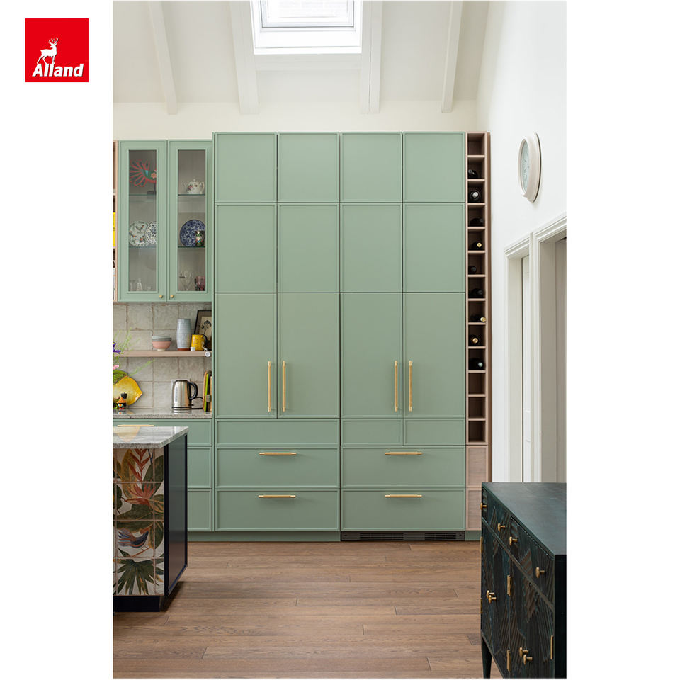 Allandcabinet New Model Cupboard Furniture Modular Green Slim Shaker Wall Cabinet Pantry Wood Dining Room Kitchen Cabinetry