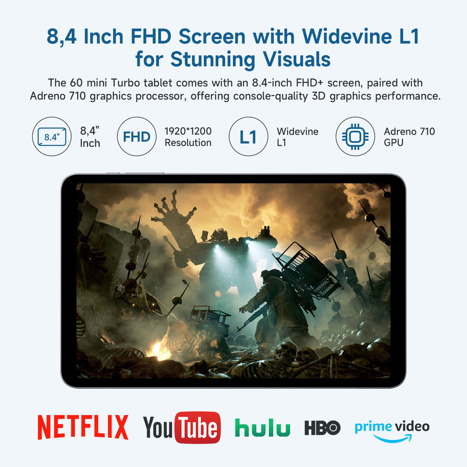 Tablette Alldocube IPlay 60 Mini Turbo 6Gen1 8,4 pouces Android 14 16 Go de RAM + 128 Go de ROM Widevine L1 Décodage vidéo 4K WiFi 5G