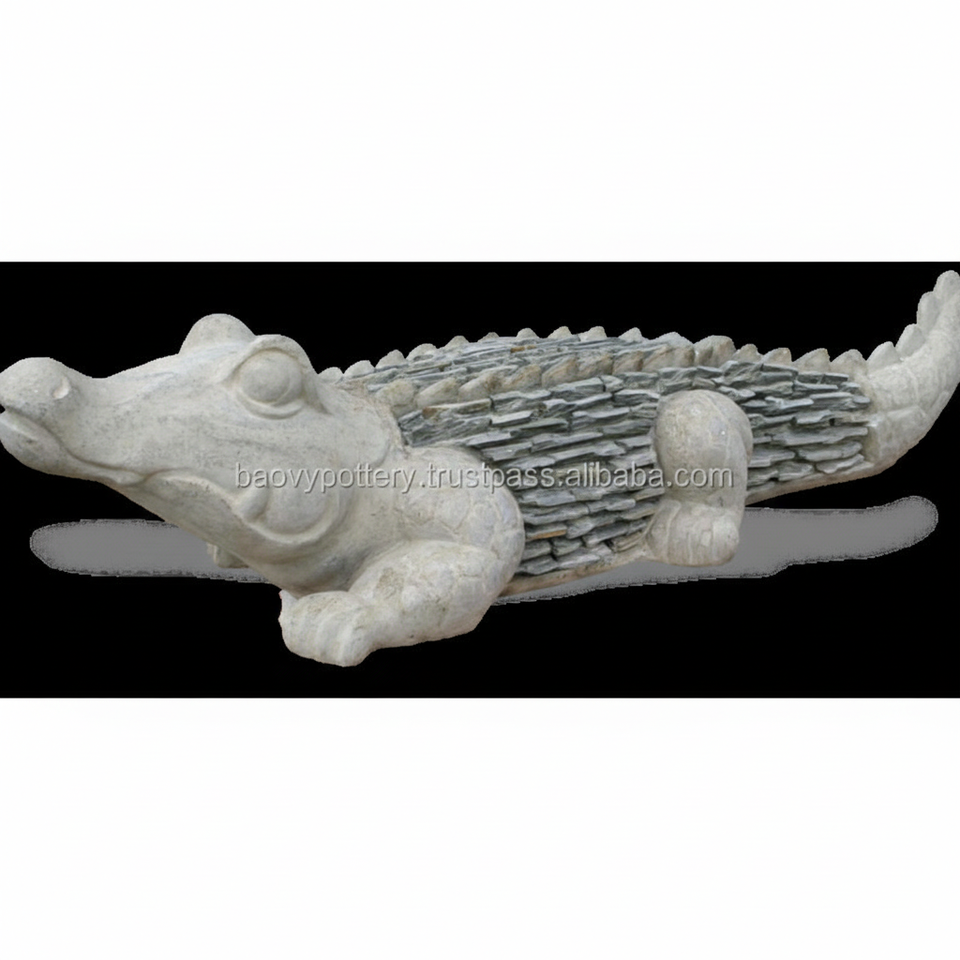Statue d'alligator avec ardoise, statue d'animal, alligator avec pierre dans la collection de poterie du Vietnam