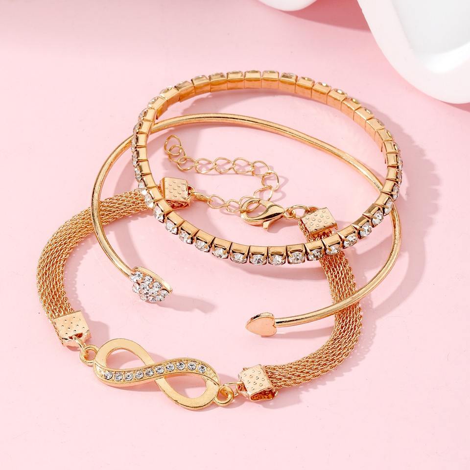 Ensemble de 3 Bracelets en Alliage pour Femmes, Bracelets à Breloques Cœur Pêche Ouvert et Cristaux de Diamant, Bijoux Tendance