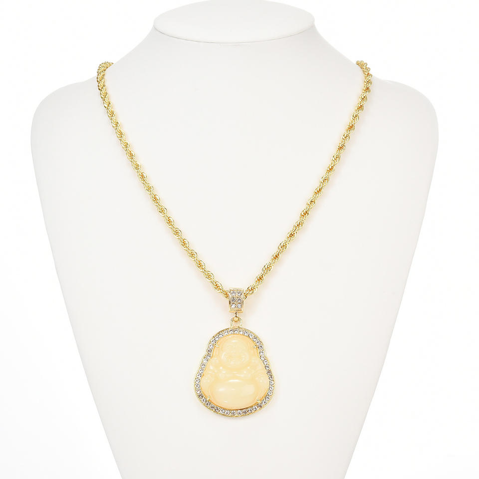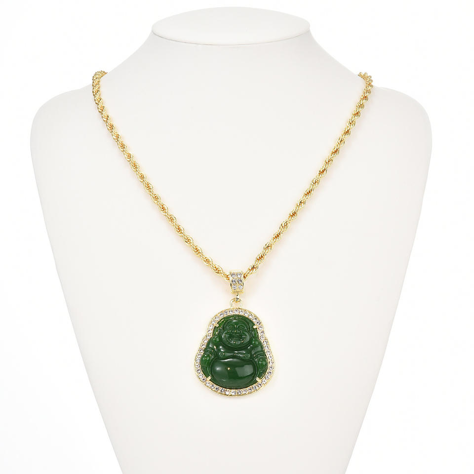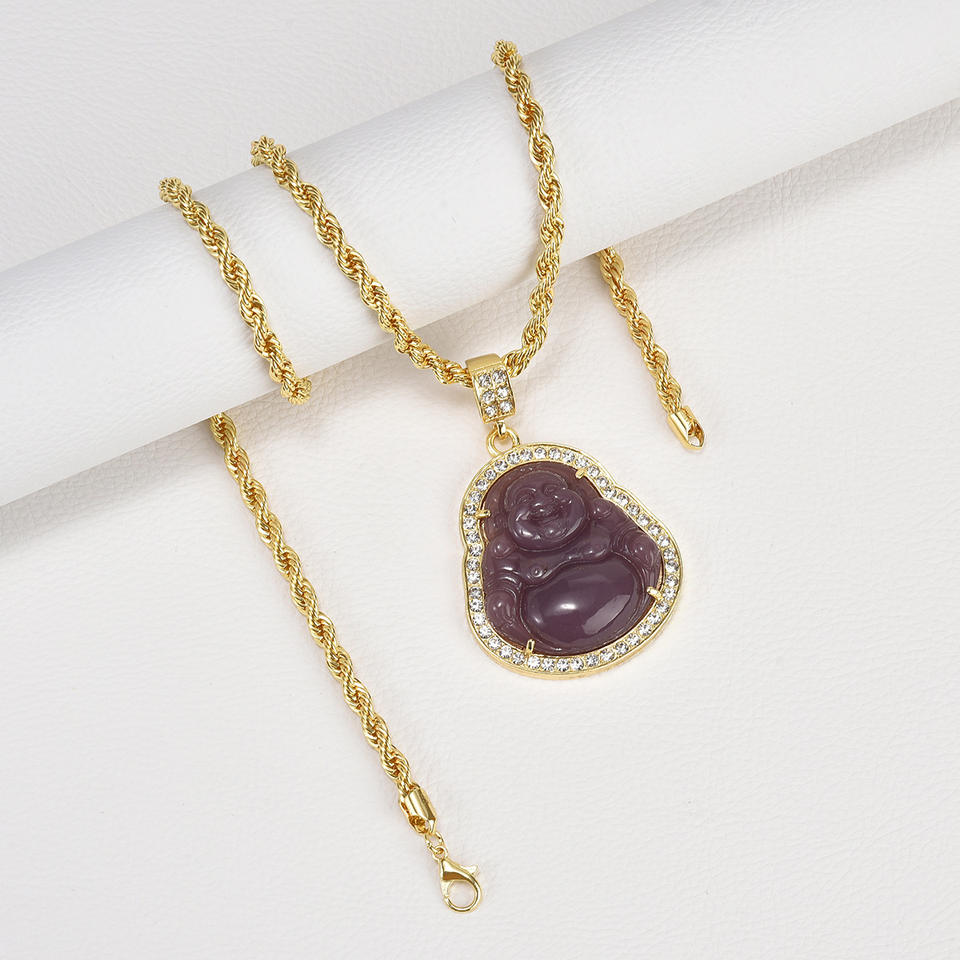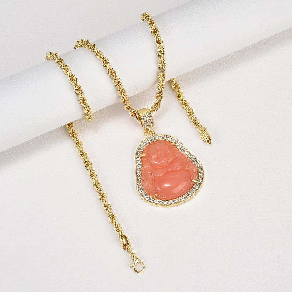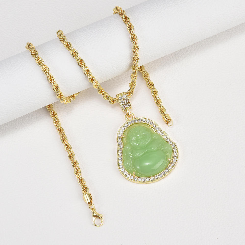 Bijoux en alliage personnalisé multicolore Buddah Laughing Charm Twist Chain Rope 14K Plated Jade Buddha Necklace Pendant