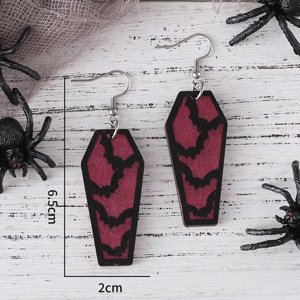 Boucles d'oreilles pendantes amusantes en alliage tendance géométrique Halloween Goth Spider Web Bat Coffin pour femmes UIONEN 1137