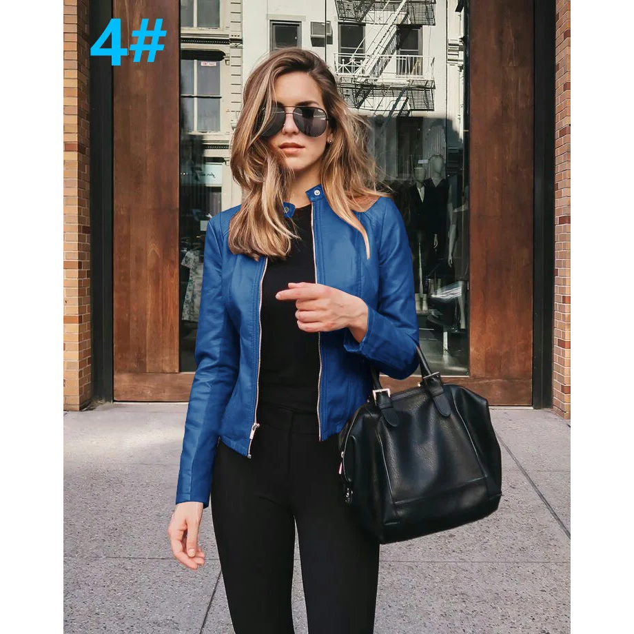 Allukasa Women Bike Coat PU Leather Outwear Zipper Outfit Spring Autumn WomeFashion Short Thin Female Jacket 2020 - 2, S
