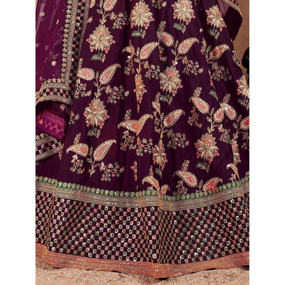 Lehenga choli brodé de créateur de vêtements de mariée de couleur pourpre séduisante