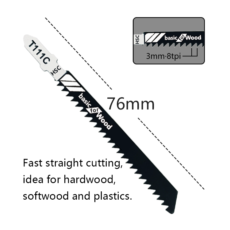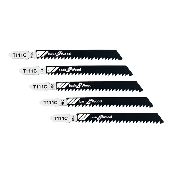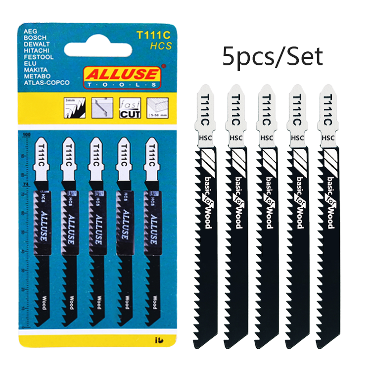 Alluse 5 lames de scie sauteuse T111C 8TPI HCS de qualité industrielle, 1,2 mm d'épaisseur, coupe propre pour le bois, le plastique et les tuyaux (support OEM)