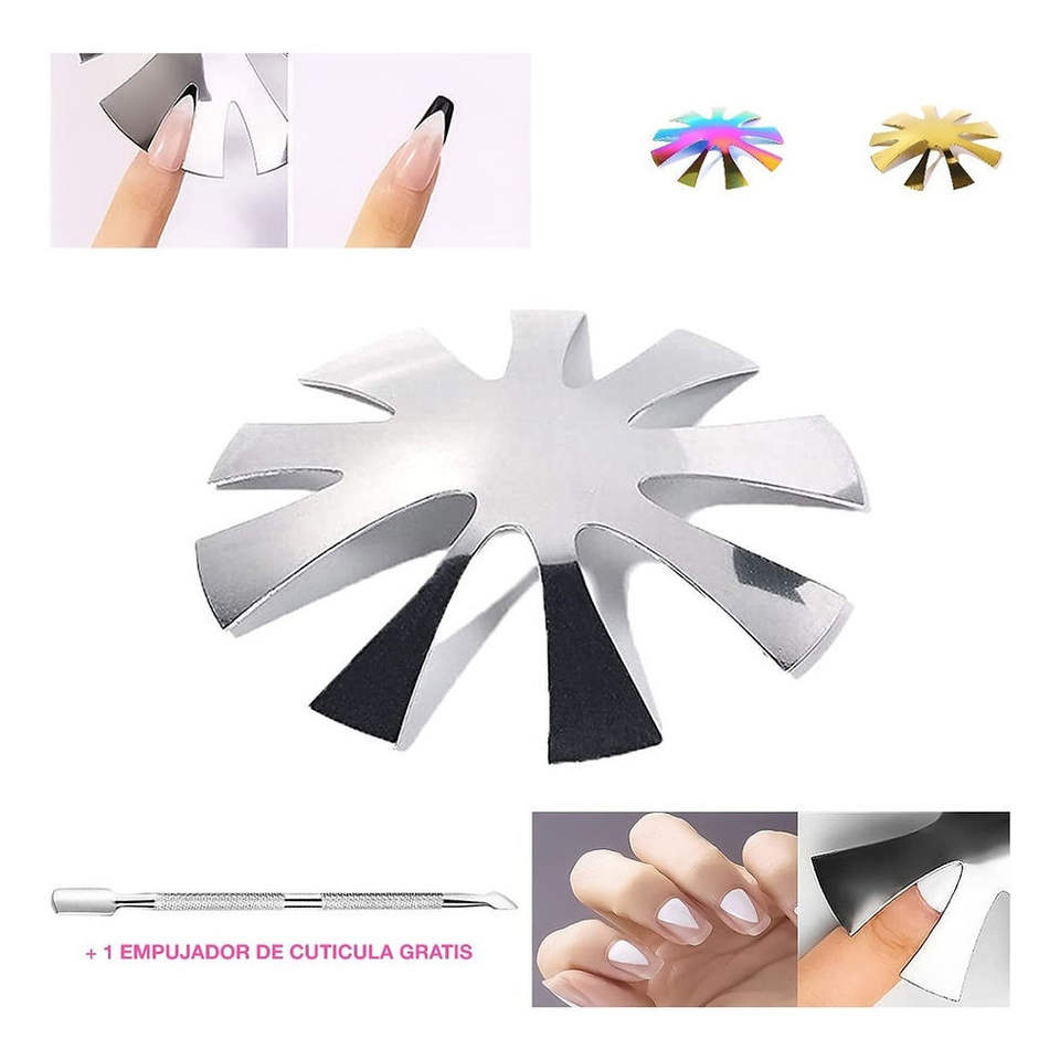Forme à ongles en amande, plaque courte en forme de sourire, outil de modelage d'ongles en forme de papillon argenté pour ongles en acrylique