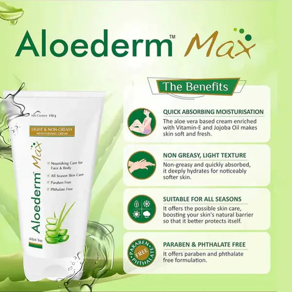 Crème hydratante Aloederm Max, extrait d'aloe vera pressé à froid, sans paraben ni phtalate, soin du visage et du corps pour toutes les saisons, 150 g