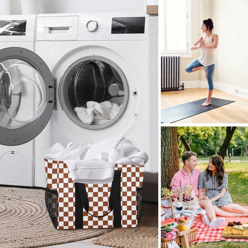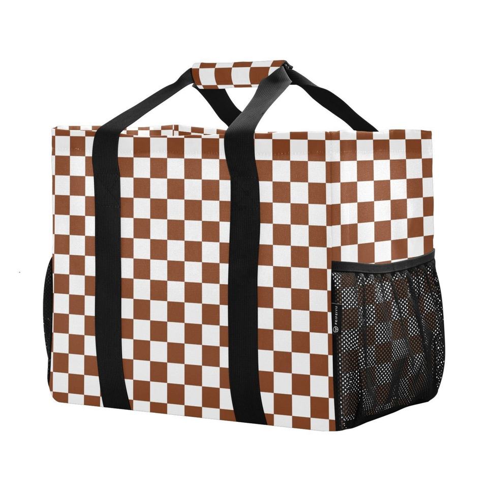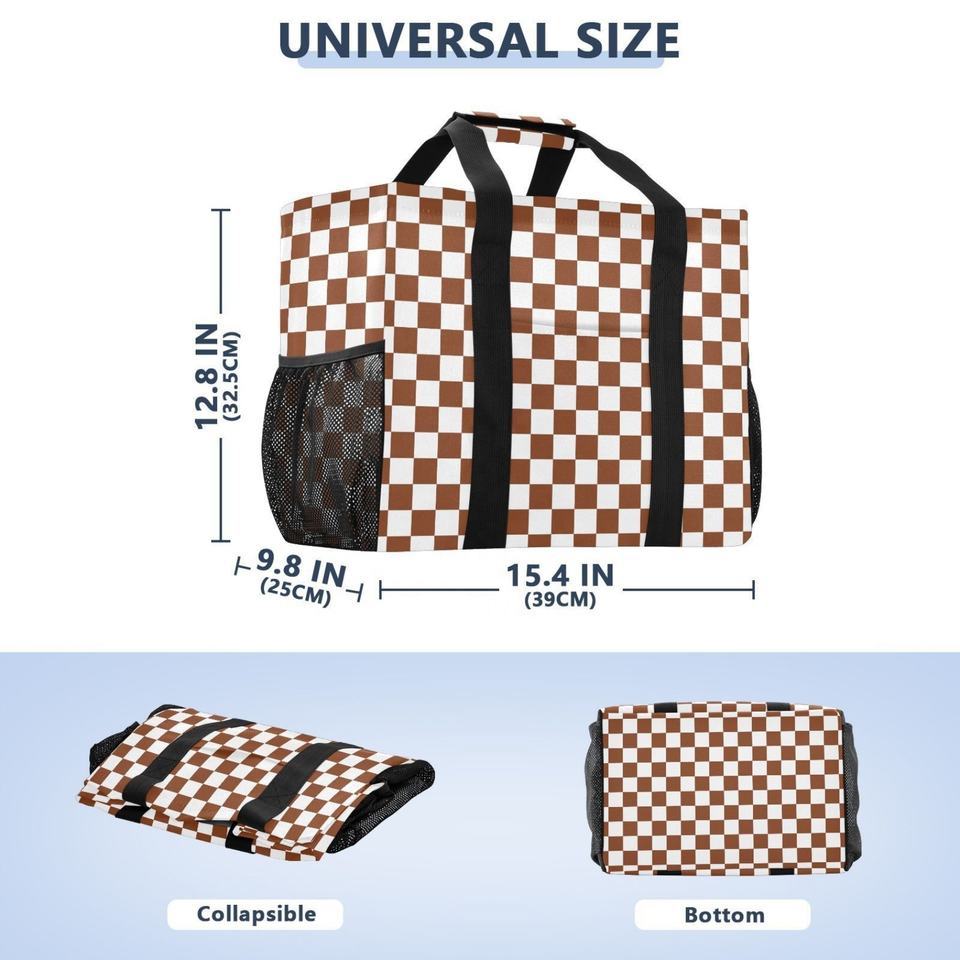 Sac de plage et panier à linge portable en polyester imperméable, motif à carreaux marron, collection Aloha, personnalisable